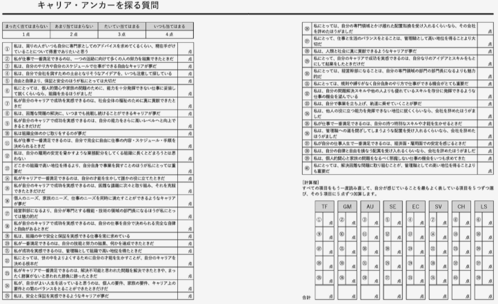 なお、本書には自己理解を深めるために、キャリアアンカーと言うものがありました。